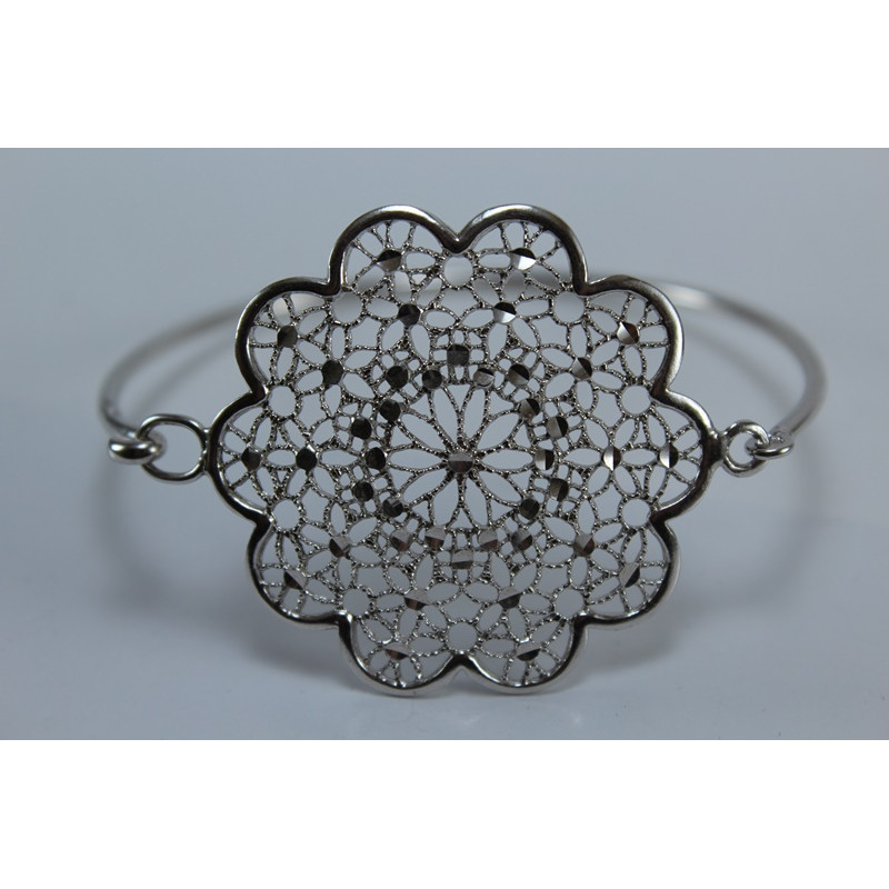 Pulsera en plata de 925mls.Con baño de rodio.Decorado con la flor de la vida de la ciudad palatina de Medina Al-Zahra de Córdoba.936.d.c.