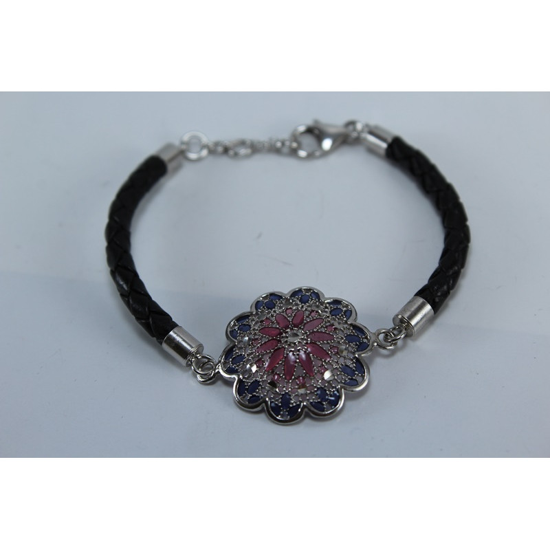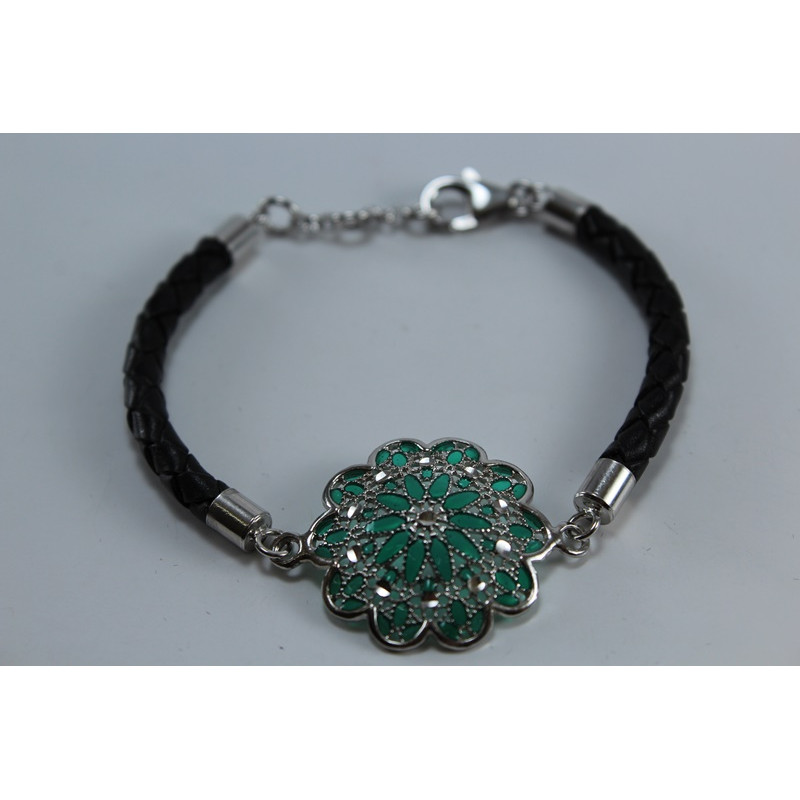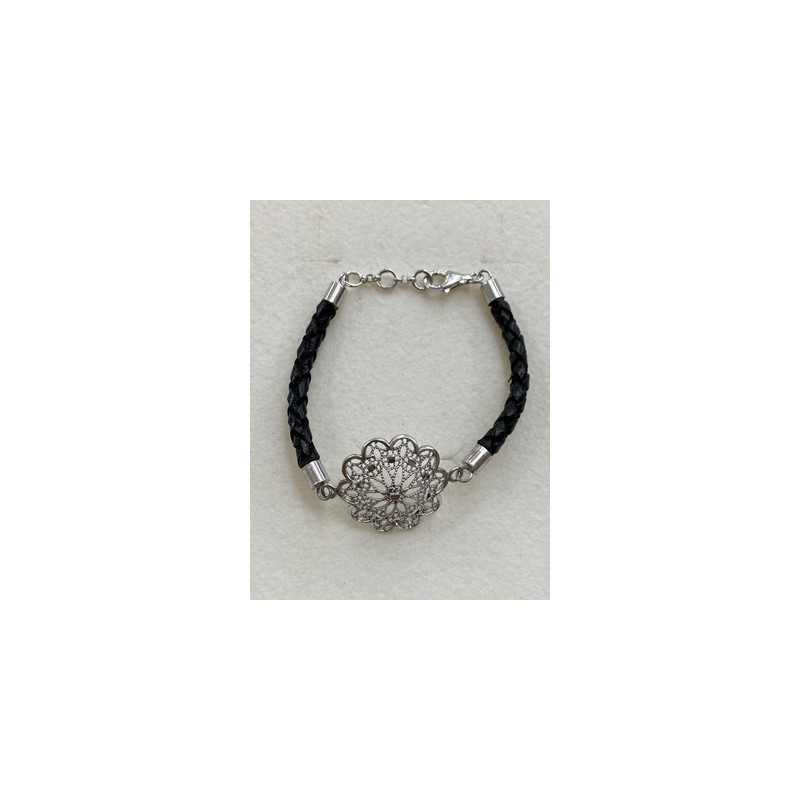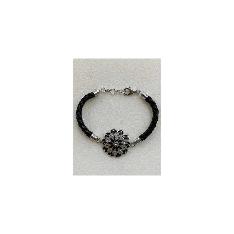 Pulsera en plata de 925mls.Con baño de rodio.Decorado con la flor de la vida de la ciudad palatina de Medina Al-Zahra de Córdoba.936.d.c.