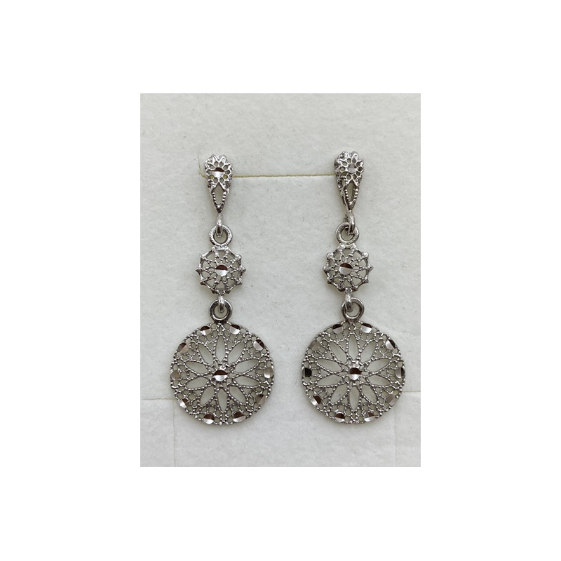 Pendientes en plata de 925 mls. Con baño de rodio. Decorado con la flor de la vida de la ciudad palatina de Medina Al-Zahra de Córdoba. 936. d. c.