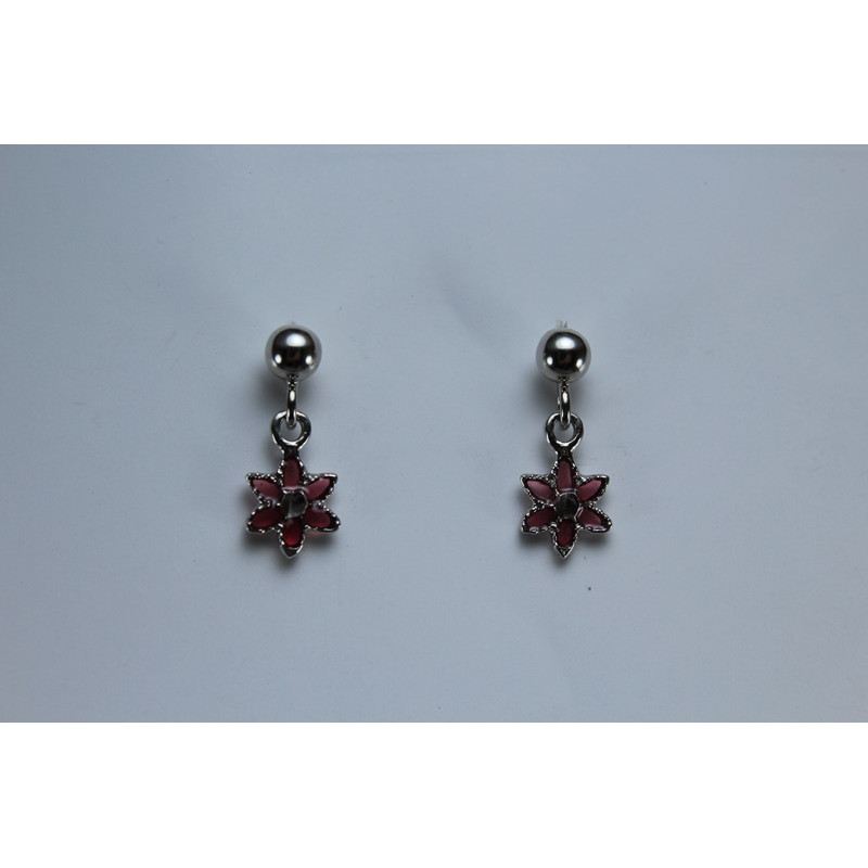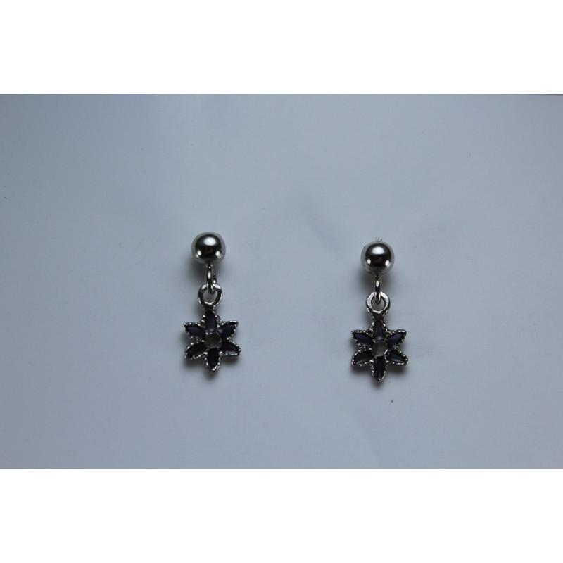 DESCRIPCION: Pendientes en plata de 925 mls. Con baño de rodio. Combinado con cerámica vidriada para metales en violeta. Decorado con la flor de la vida de la ciudad palatina de Medina Al-Zahra de Córdoba. 936. d. c.