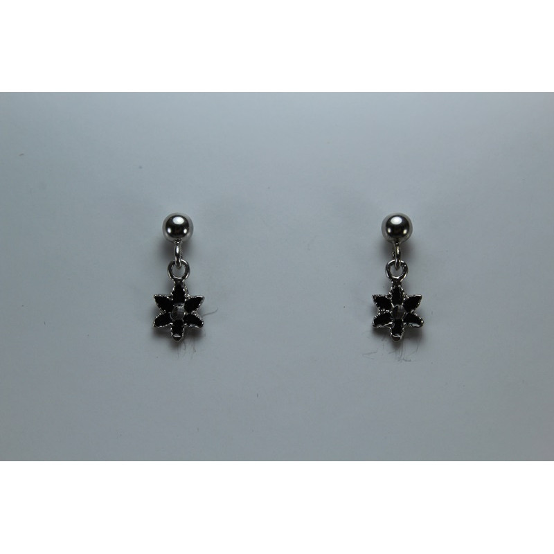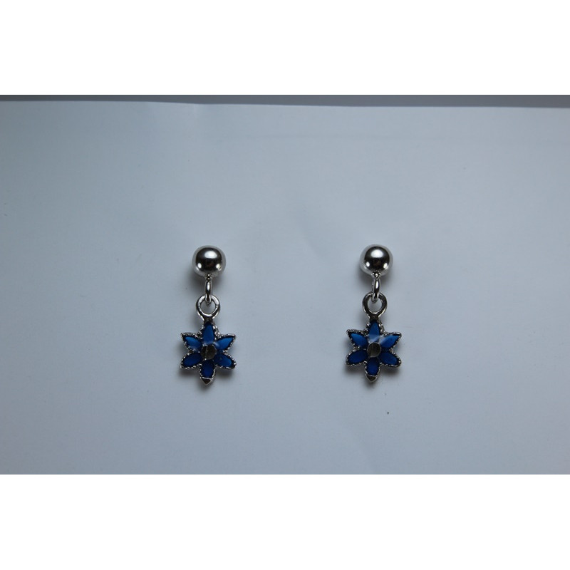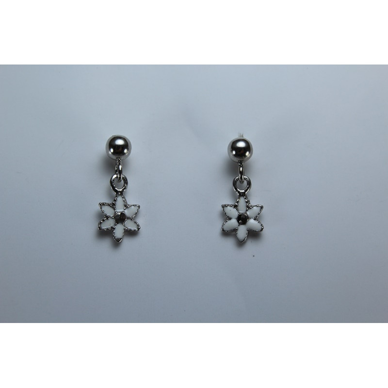 Pendientes en plata de 925 mls. Con baño de rodio. Combinado con cerámica vidriada para metales. Decorado con la flor de la vida de la ciudad palatina de Medina Al-Zahra de Córdoba. 936. d. c.