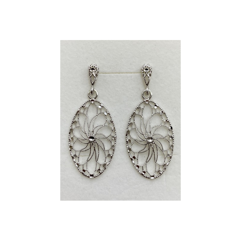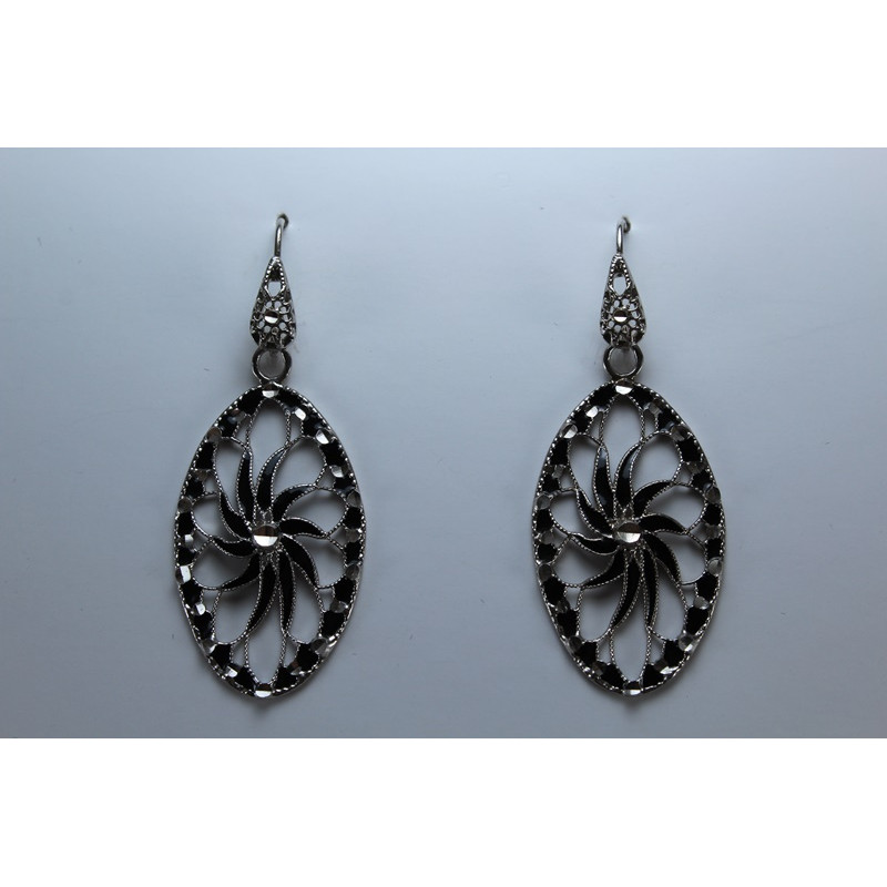 Pendientes en plata de 925 mls. Con baño de rodio. Combinados con cerámica vidriada para metales. Decorado con el Trono de Dios de la Cúpula de la Maqsura de la Mezquita de Córdoba. 960. d. c.