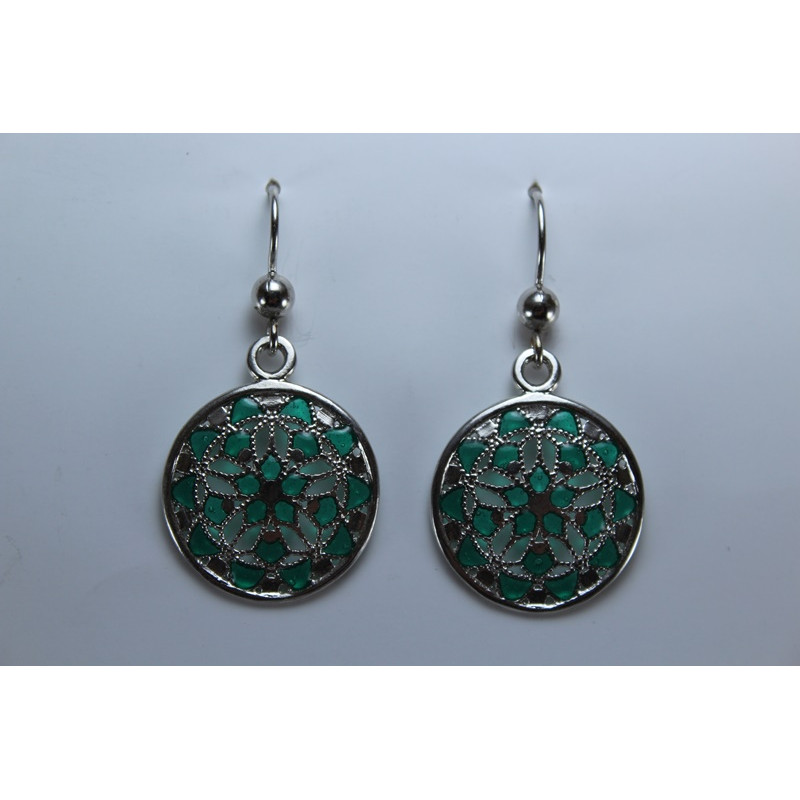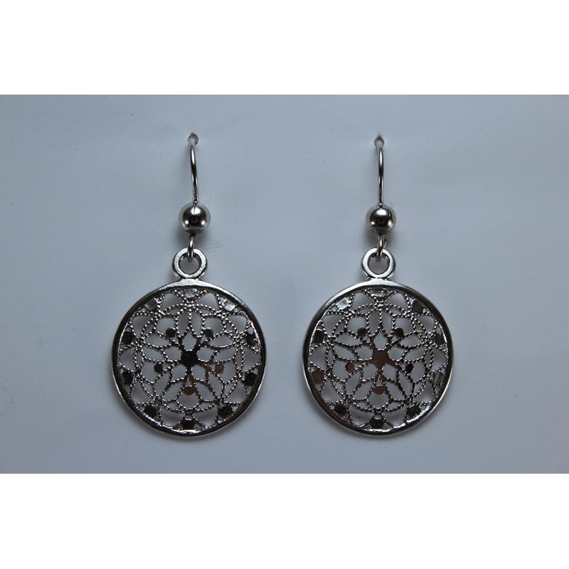 Pendientes en plata de 925 mls. Con baño de rodio. Decorado con Ataurique de la Mezquita de Córdoba, 960 d. C.