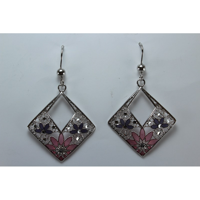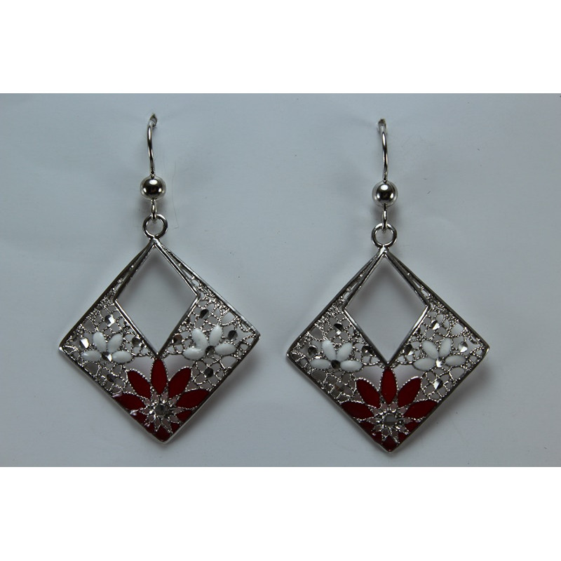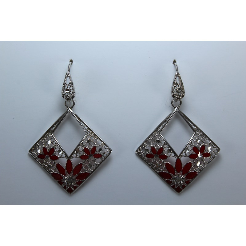 Pendientes en plata de 925 mls. Con baño de rodio. Decorado con la flor de la vida de la ciudad palatina de Medina Al-Zahra de Córdoba .936.d.c.