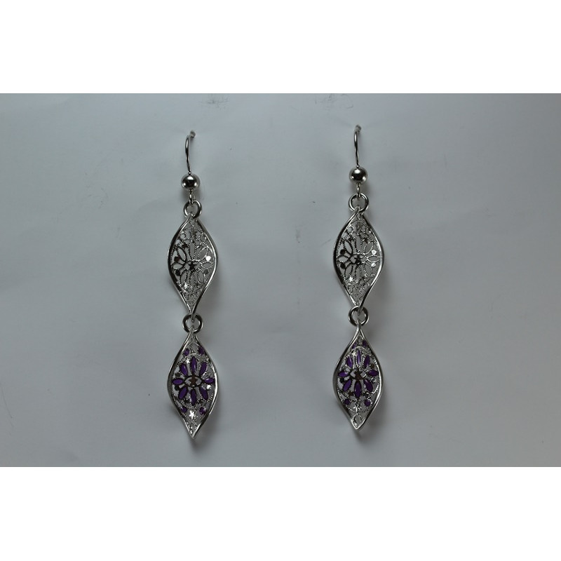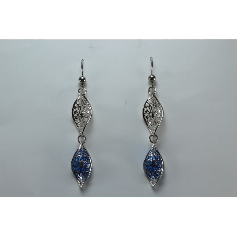 Pendientes en plata de 925mls.Con Baño de rodio. Combinado con cerámica vidriada para metales. Decorado con Ataurique de la Mezquita de Córdoba. 960. d. c.