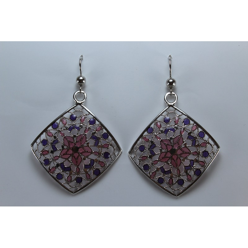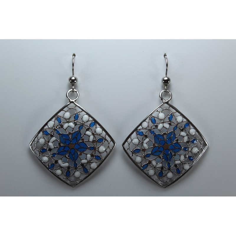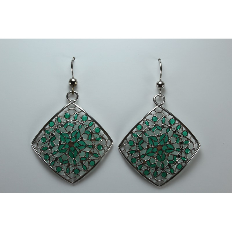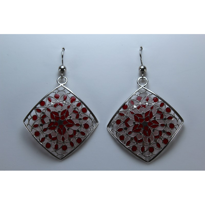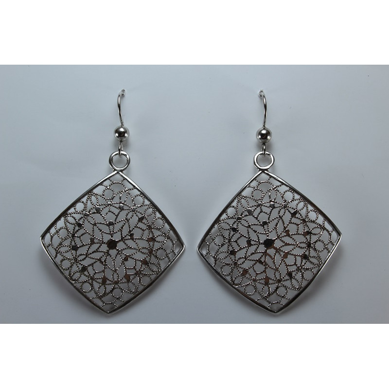 Pendientes en plata de 925mls.Con Baño de rodio. Decorado con ataurique de la Mezquita de Córdoba. 960. d. c.