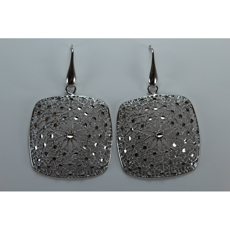 DESCRIPCION: Pendientes en plata de 925 mls. Con baño de rodio. Decorado con la flor de la vida de la ciudad palatina de Medina Al-Zahra de Córdoba. 936. d. c.