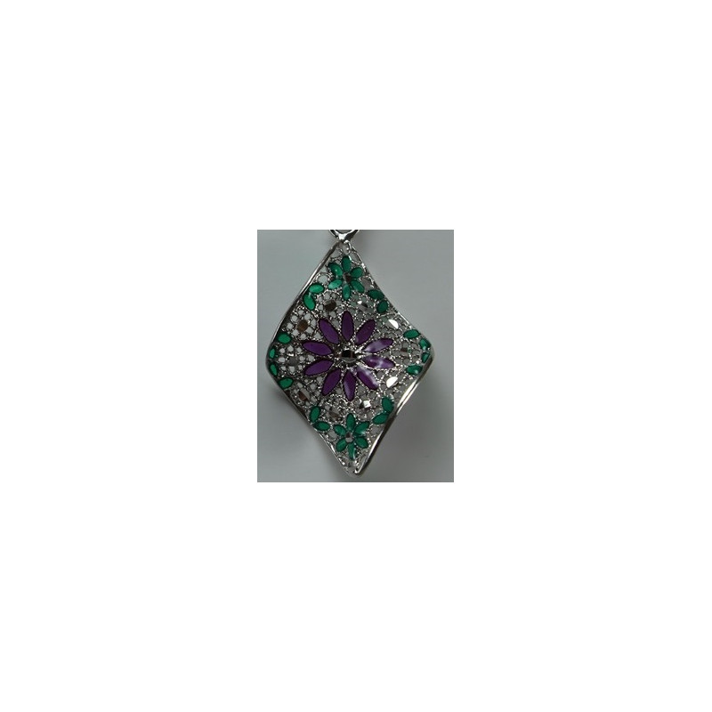 Decoración con cerámica vidriada en color morado y verde