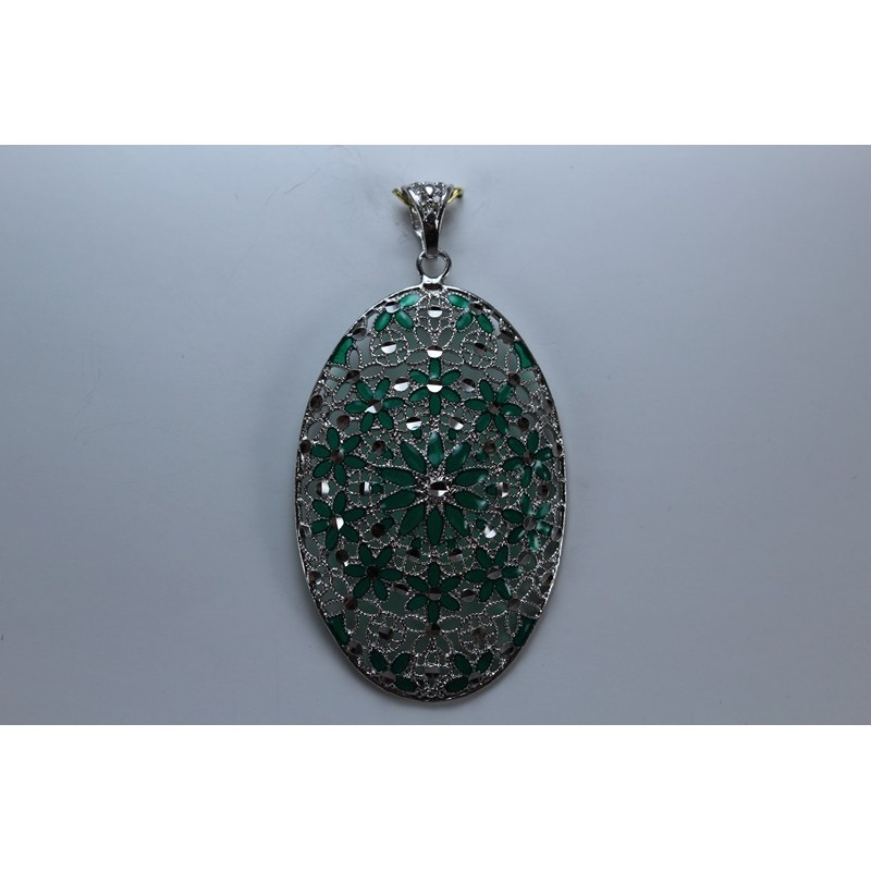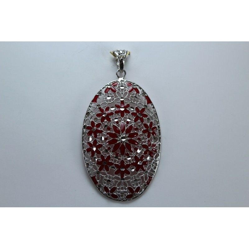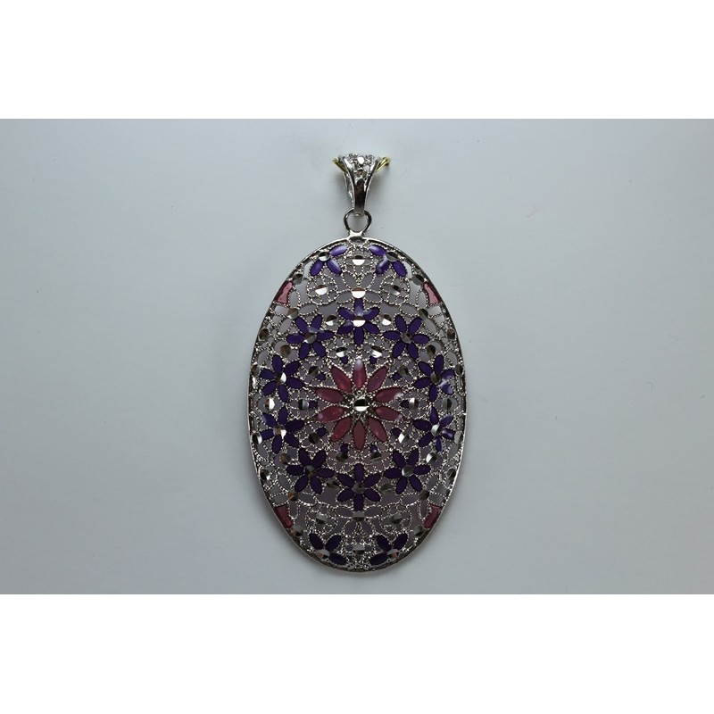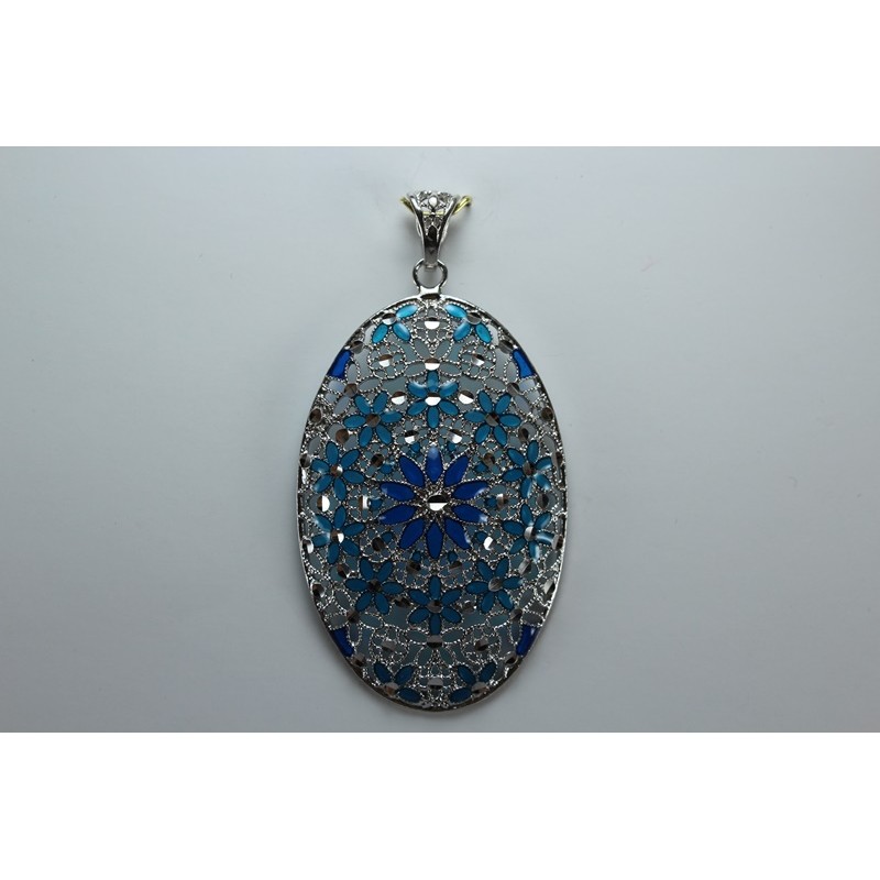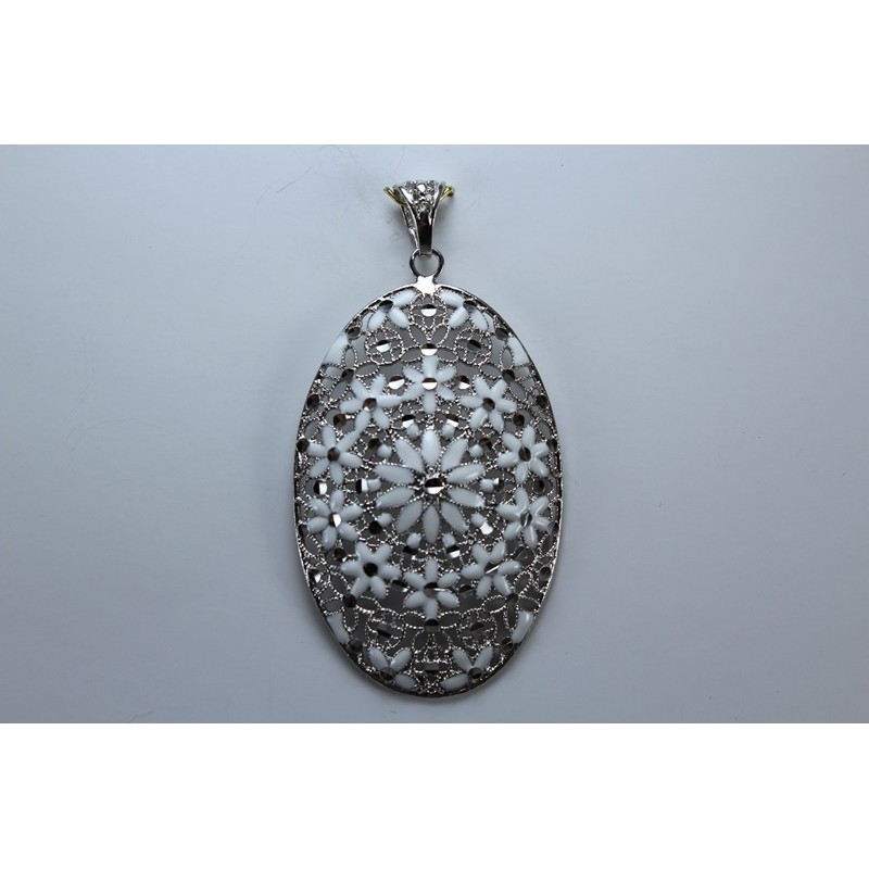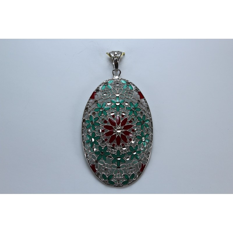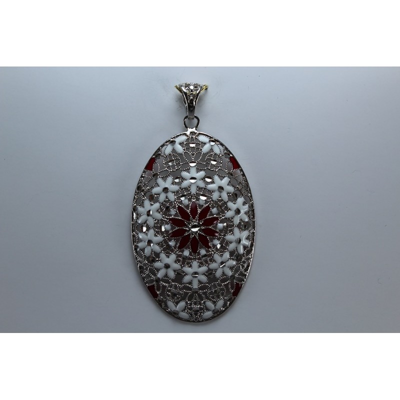 Colgante en plata de 925 mls. Con baño de rodio. Decorado con la flor de la vida de la ciudad palatina de Medina Al-Zahra de Córdoba .936. d. c.