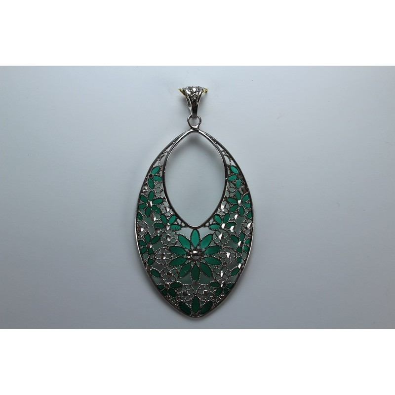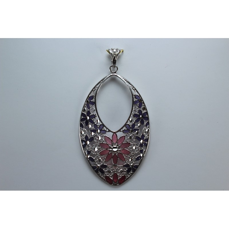Colgante en plata de 925 mls. Con baño de rodio. Decorado con la flor de la vida de la ciudad palatina de Medina Al-Zahra de Córdoba. 936. d. c.