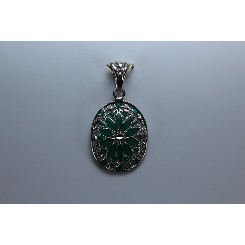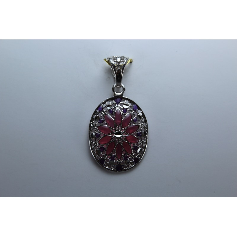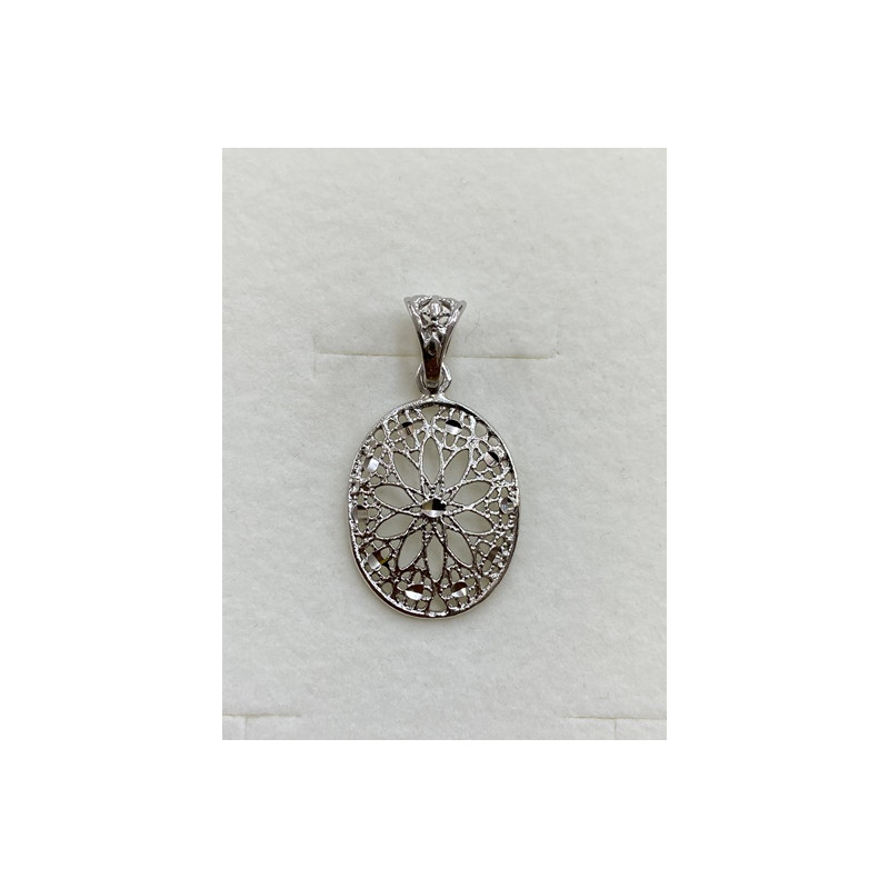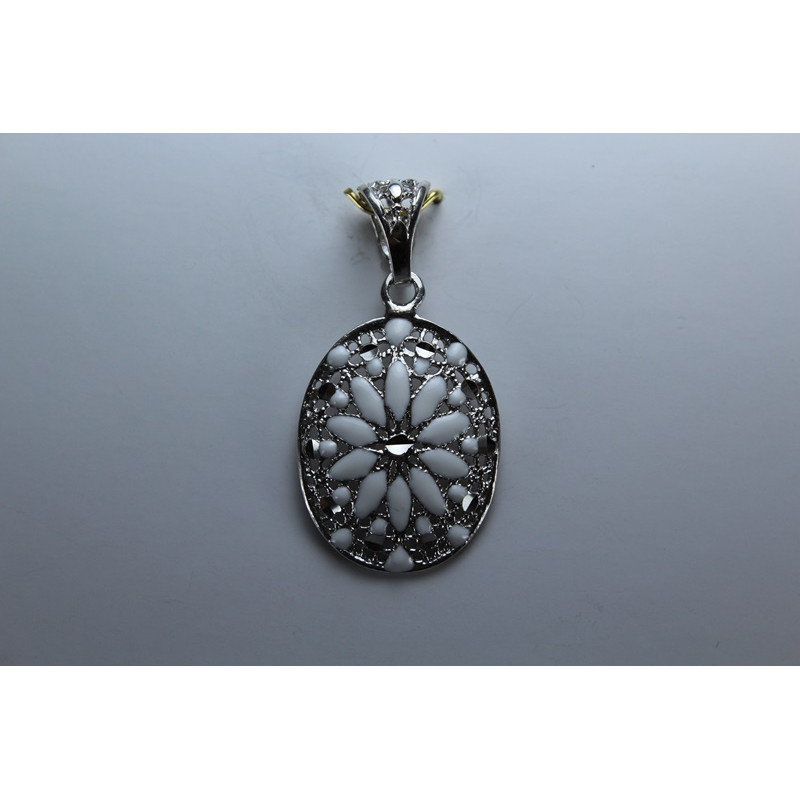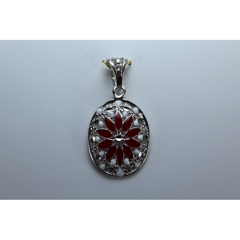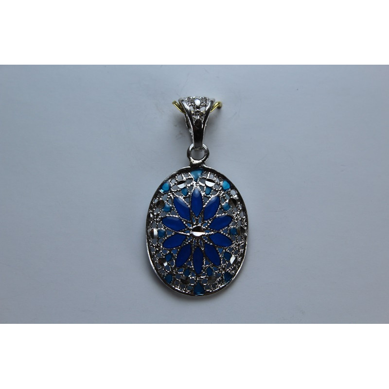 Colgante en plata de 925 mls. Con baño de rodio .Combinados con cerámica vidriada para metales. Decorado con la flor de la vida de la ciudad palatina de Medina Al-Zahra de Córdoba del año 936.d.c.