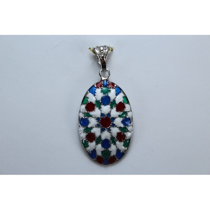 Colgante en plata de 925 mls. Con baño de rodio. Decorado con Azulejo del taller de la ciudad palatina de Medina Al-Zahra de Córdoba del año 936.d.c.
