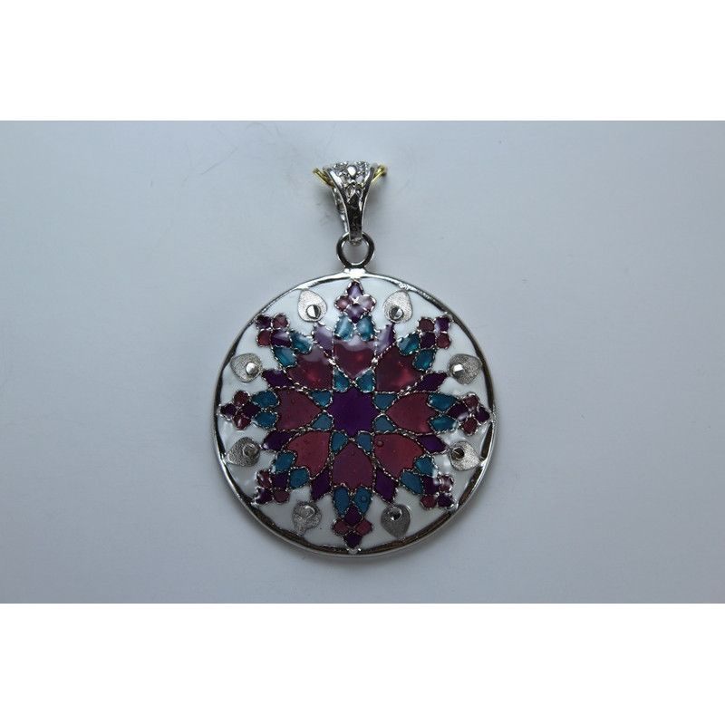 Colgante en plata de 925 mls. Con baño de rodio. Decorado con Azulejo del taller de la ciudad palatina de Medina Al-Zahra de Córdoba del año 936.d.c.
