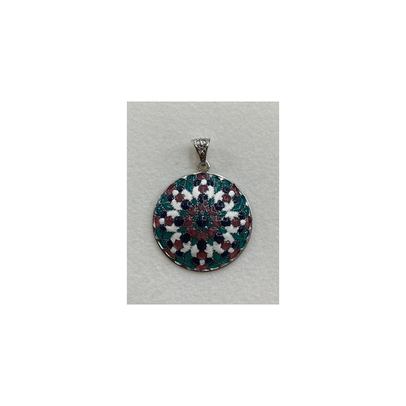 Colgante en plata de 925 mls. Con baño de rodio. Decorado con Azulejo del taller de la ciudad palatina de Medina Al-Zahra de Córdoba del año 936.d.c.