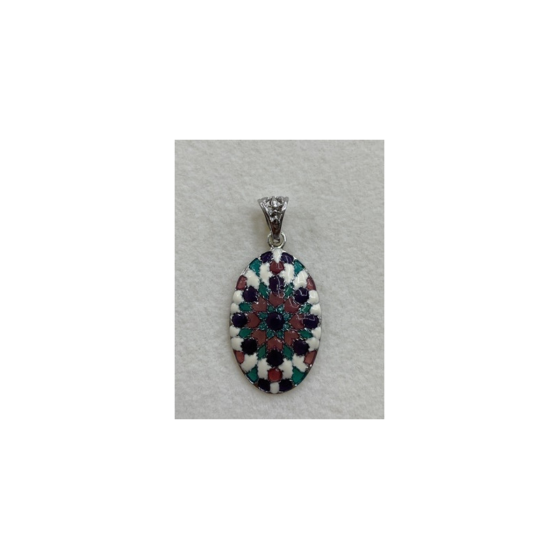 Colgante en plata de 925 mls. Con baño de rodio. Decorado con Azulejo del taller de la ciudad palatina de Medina Al-Zahra de Córdoba del año 936.d.c.