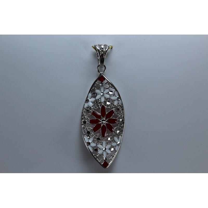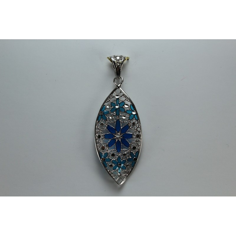 Colgante en plata de 925 mls. Con baño de rodio. Decorado con la flor de la vida de la ciudad palatina de Medina Al-Zahra de Córdoba.936.d.c.