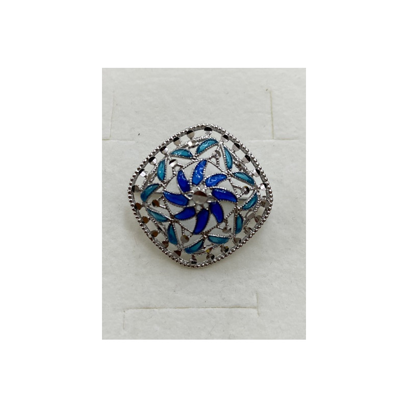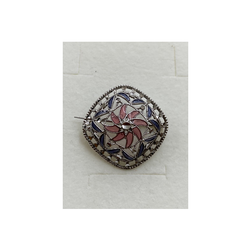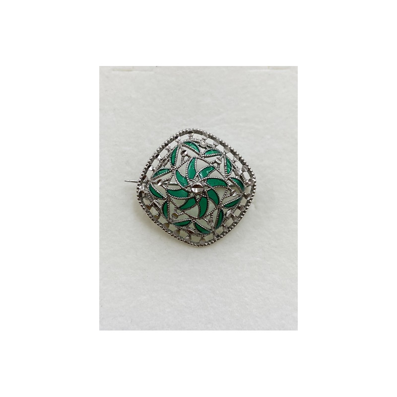 Broche en plata de 925 mls. Con baño de rodio y combinado con cerámica vidriada para metales . Decorado con el Trono de Dios de la Cúpula de la Maqsura de la Mezquita de Córdoba. 960. d. c.