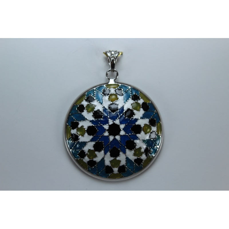 Colgante en plata de 925 mls. Con baño de rodio. Decorado con Azulejo del taller de la ciudad palatina de Medina Al-Zahra de Córdoba del año 936.d.c.