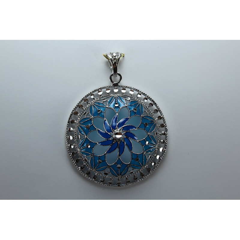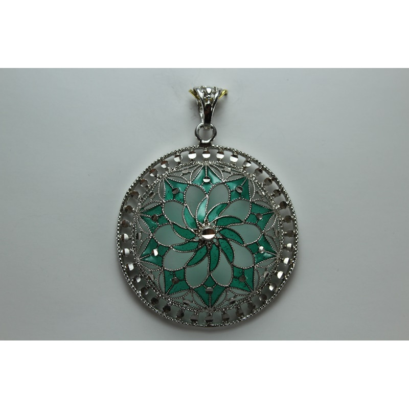 Colgante en plata de 925 mls. Con baño de rodio . Decorado con el Trono de Dios de la Cúpula de la Maqsura de la Mezquita de Córdoba. 960. d. c.