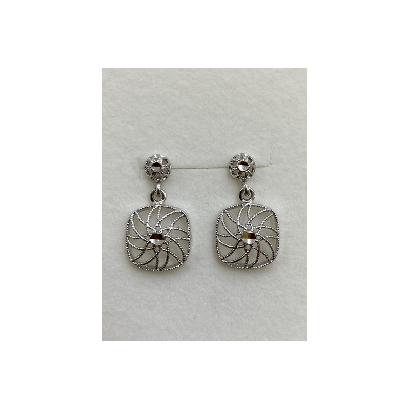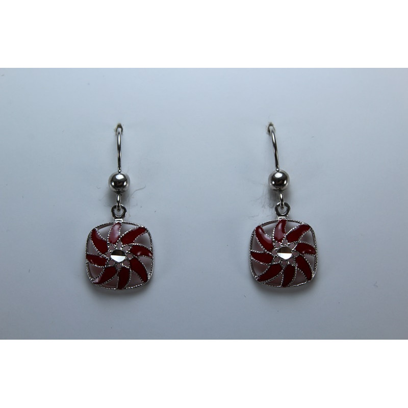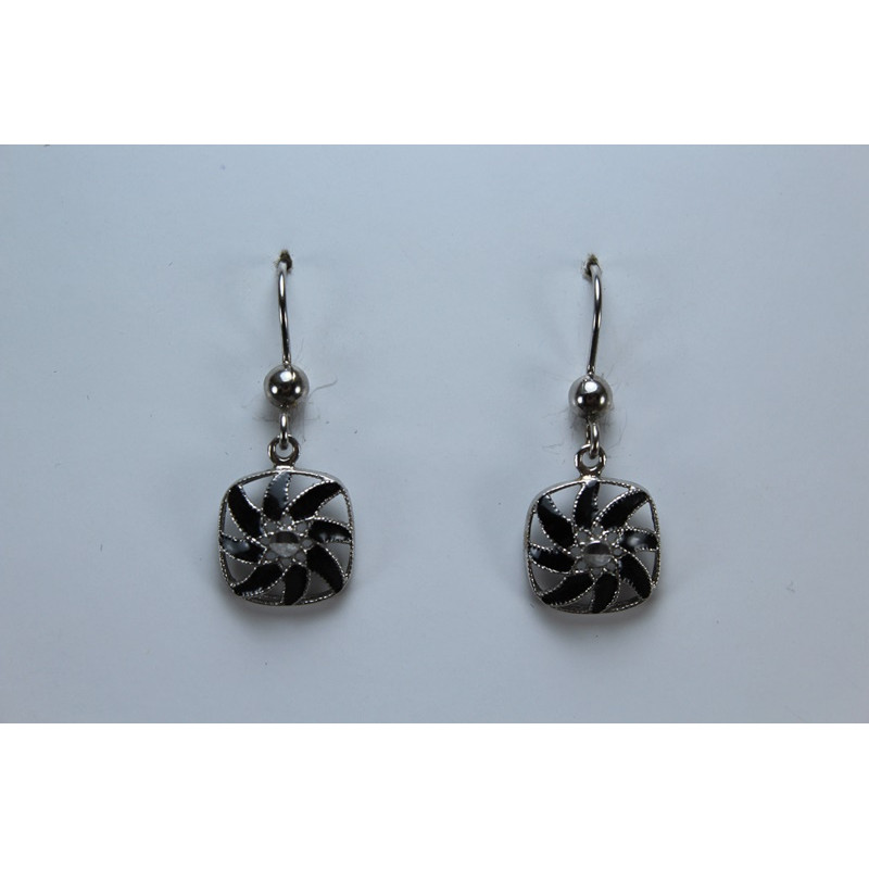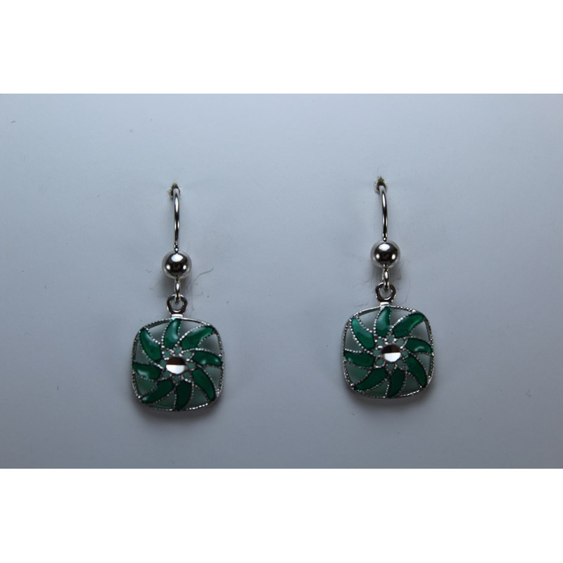 Pendientes en plata de 925 mls. Con baño de rodio. Combinados con cerámica vidriada para metales. Decorado con el Trono de Dios de la Cúpula de la Maqsura de la Mezquita de Córdoba. 960. d. c.