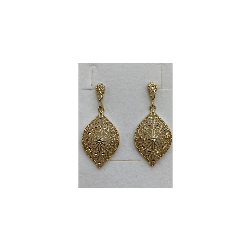 Pendientes en plata de 925mls. Con un primer baño de oro blanco y terminación con baño de oro amarillo y combinados con cerámica vidriada para metales.Decorado con la flor de la vida de la ciudad palatina de Medina Al-Zahra de Córdoba del año 936.d.c.