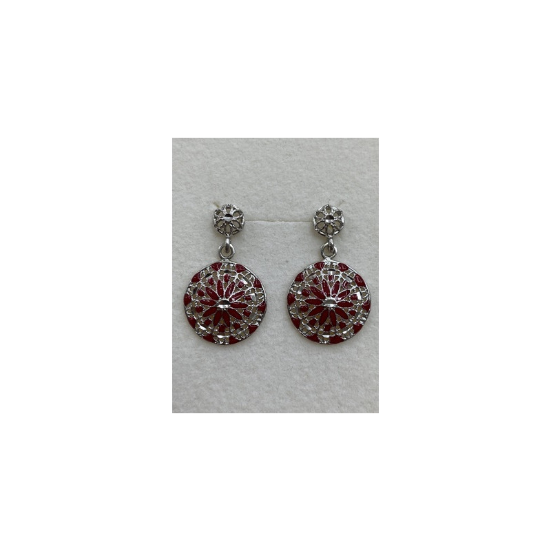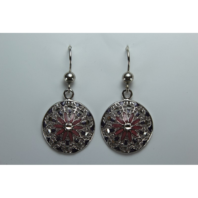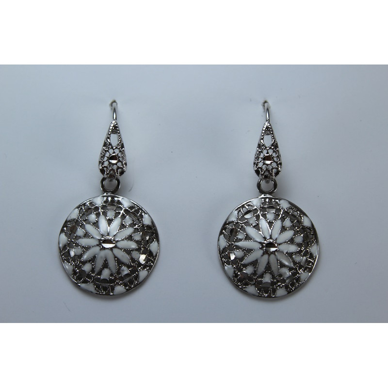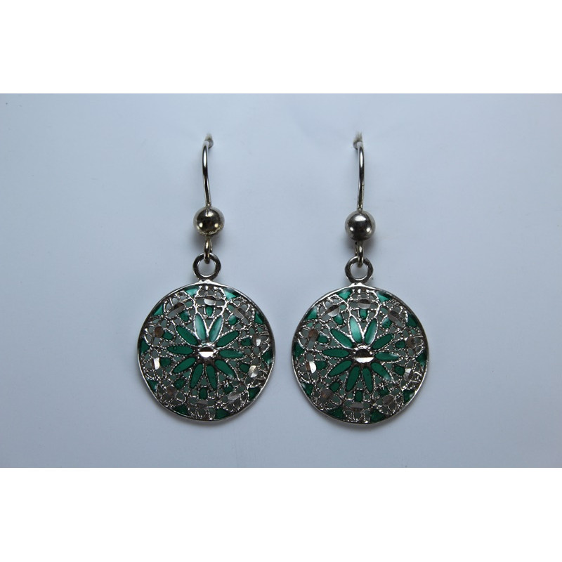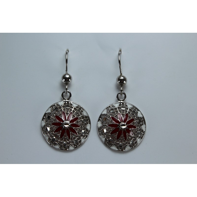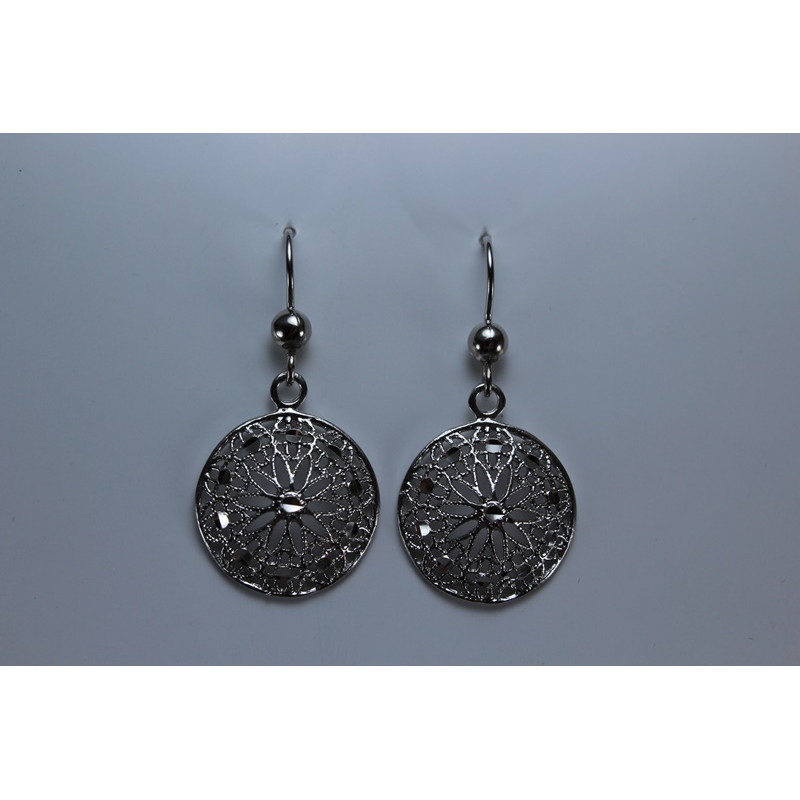 Pendientes en plata de 925 mls. Con baño de rodio. Decorado con la flor de la vida de la ciudad palatina de Medina Al-Zahra de Córdoba. 936. d. c.