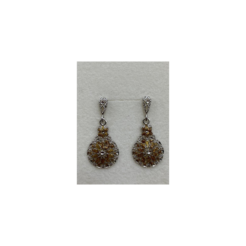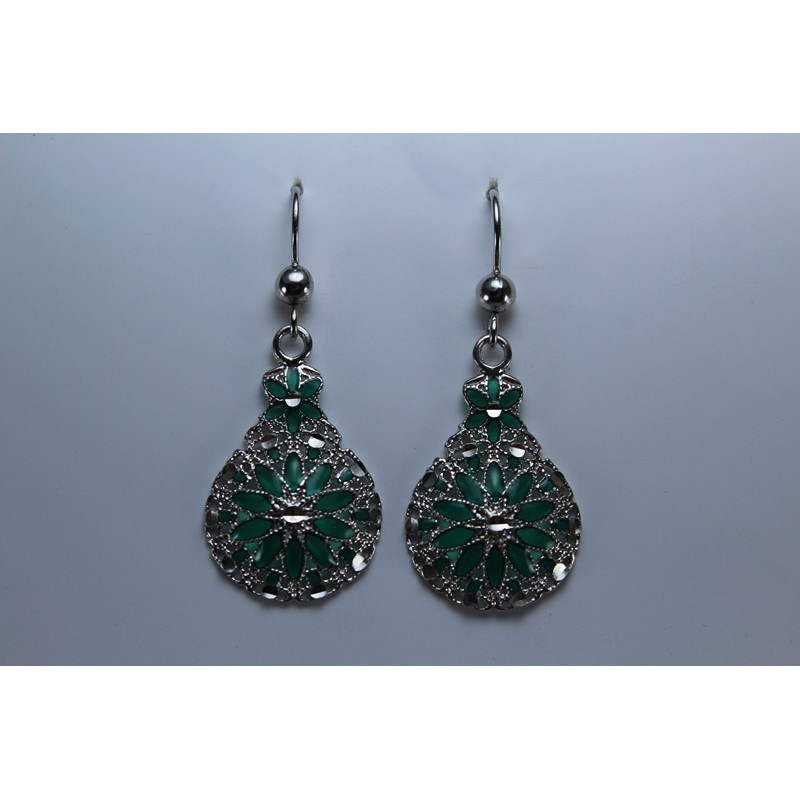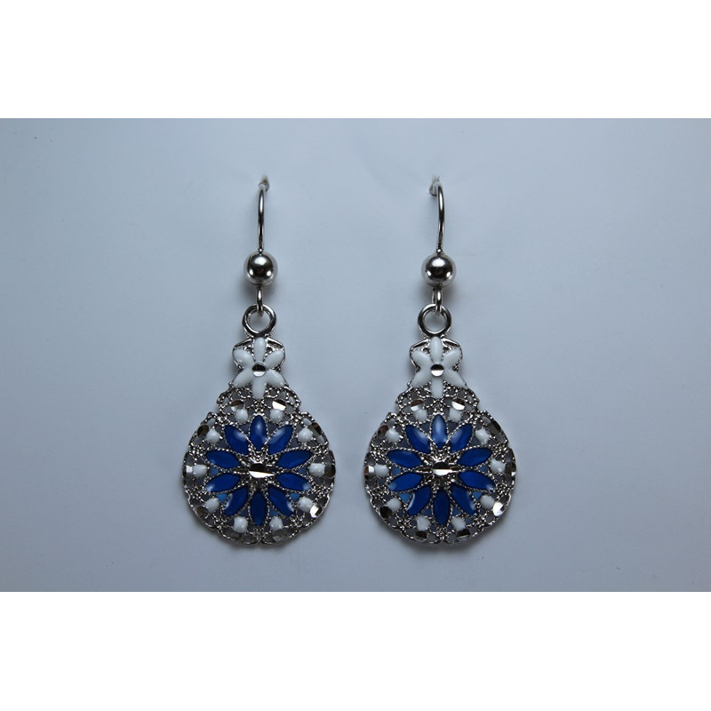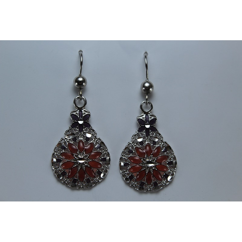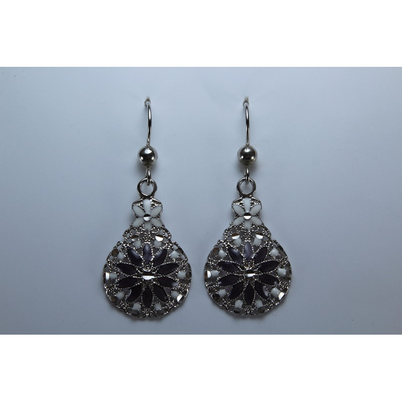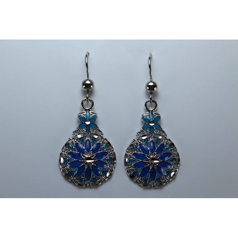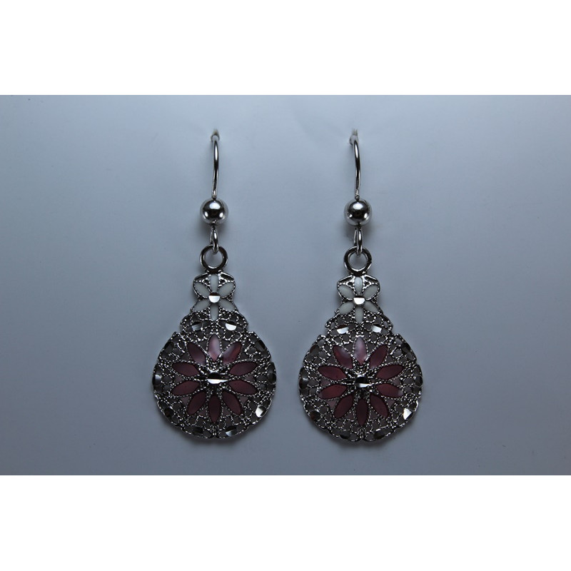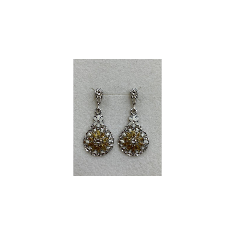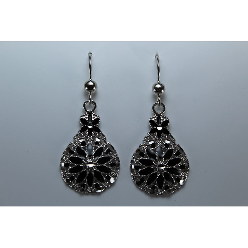 Pendientes en plata de 925 mls. Con baño de rodio. Decorado con la “Flor de la vida” de la cuidad Palatina de Medinat Al-Zahra de Córdoba. 936 d.C.