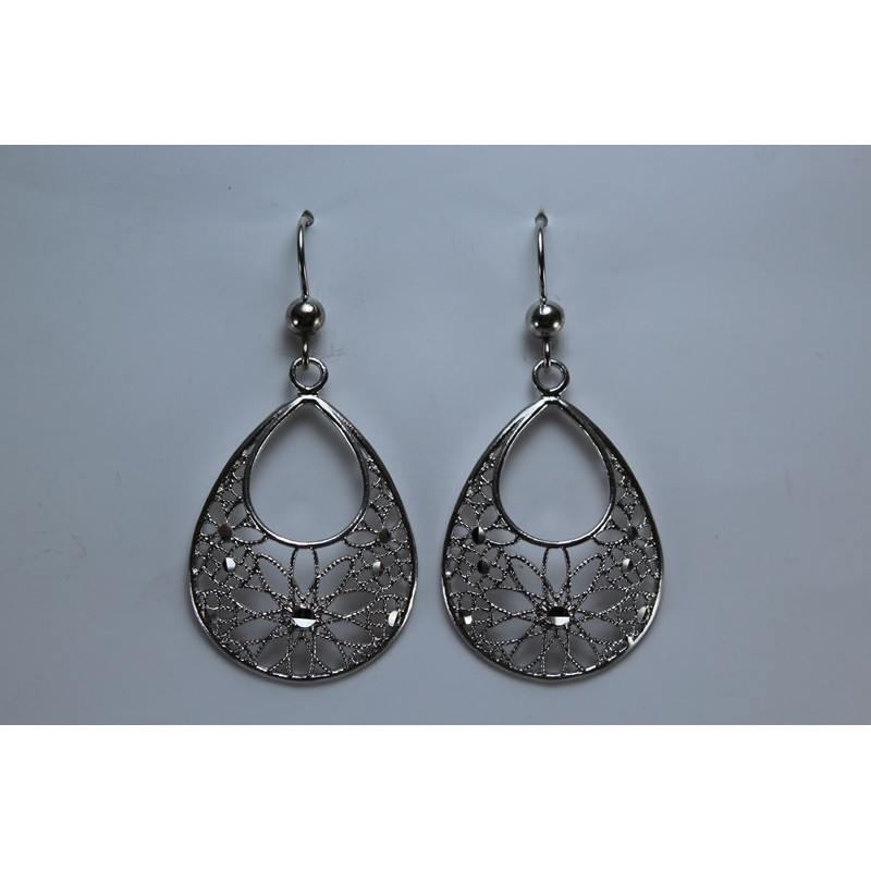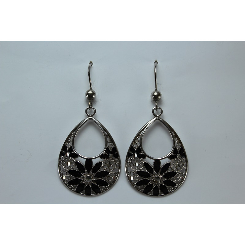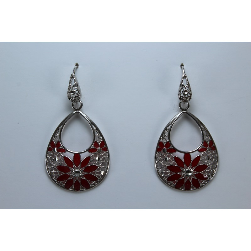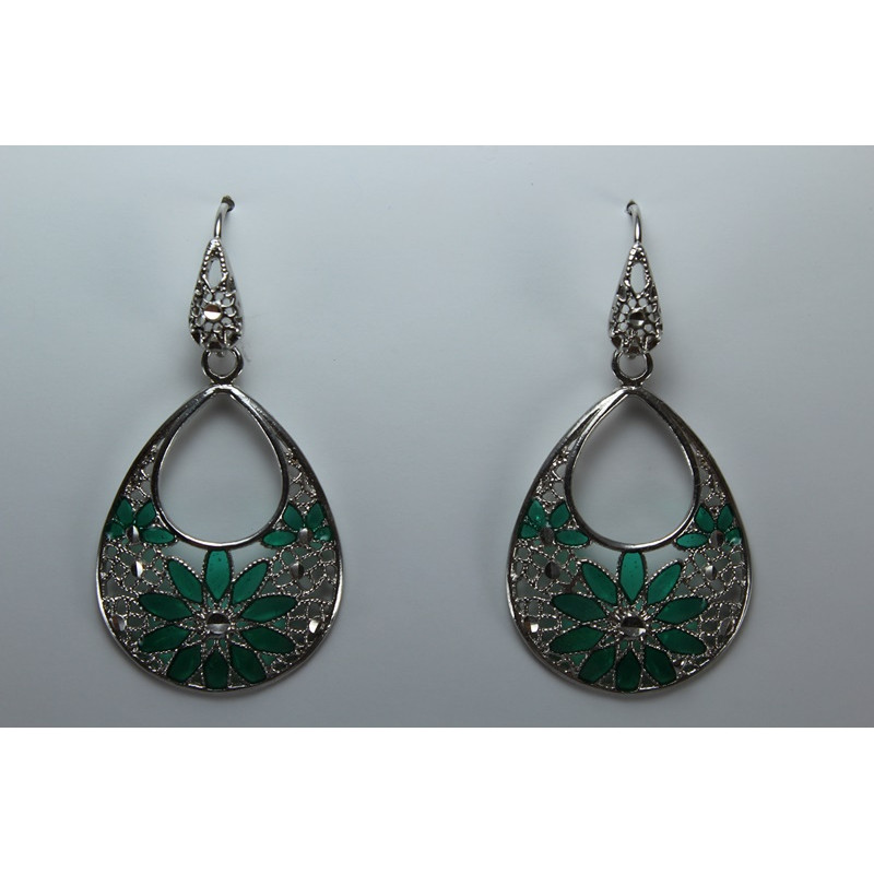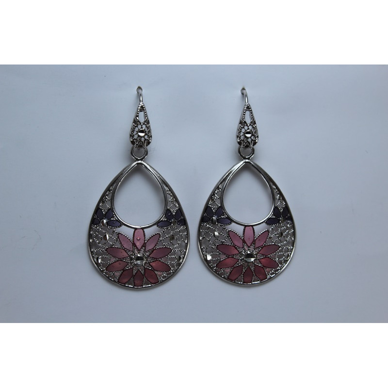 Pendientes en plata de 925 mls. Con baño de rodio. Decorado con la flor de la vida de la ciudad palatina de Medina Al-Zahra de Córdoba .936.d.c.