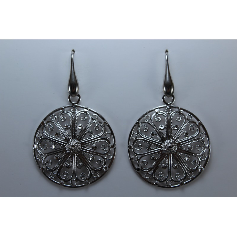 Pendientes en plata de 925mls.Con baño de rodio. Decorado con dibujo de Arte Emiral y Califal Andalusí del califato de Abderramán III en 929 d.C.