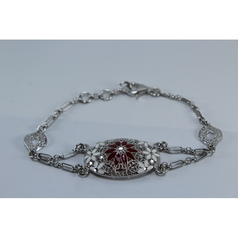 Pulsera en plata de 925mls.Con baño de rodio.Decorado con la flor de la vida de la ciudad palatina de Medina Al-Zahra de Córdoba.936.d.c