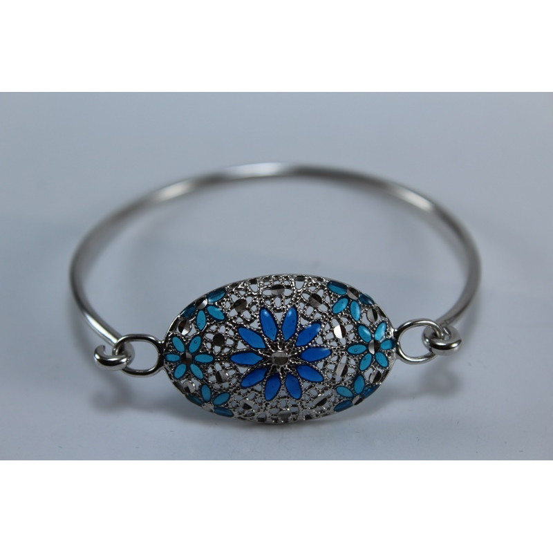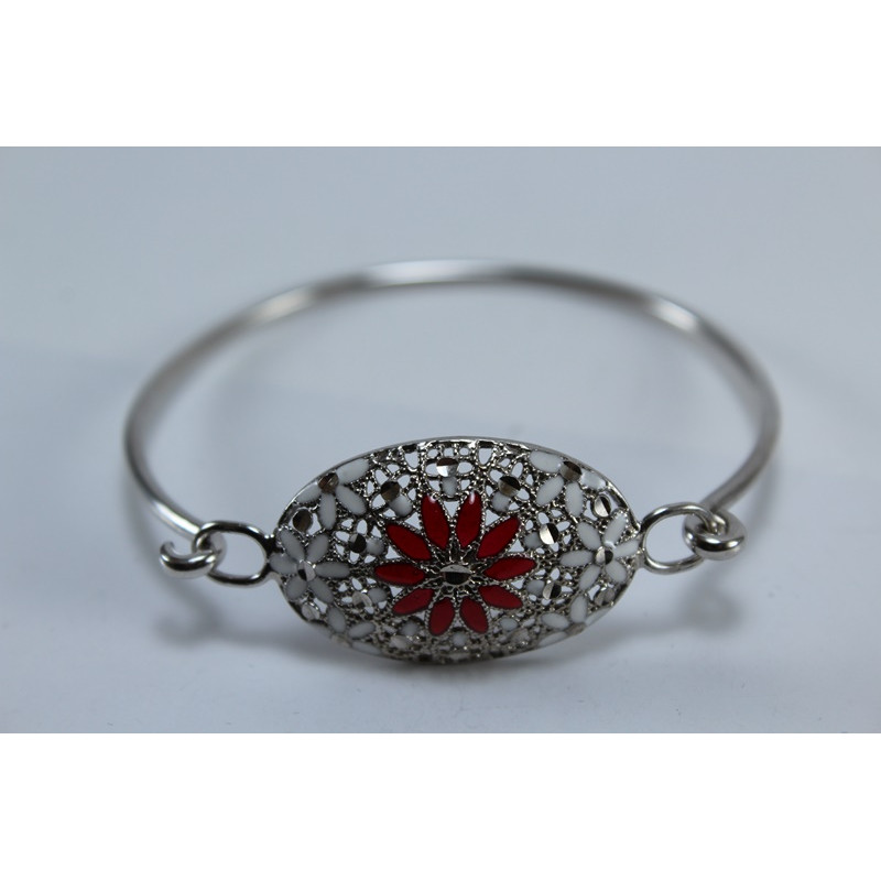 Pulsera de plata de 925mls.Con baño de rodio.Decorado con la flor dela vida de la ciudad de la vida de Medina Al-Zahra de Córdoba.936.d.c.
