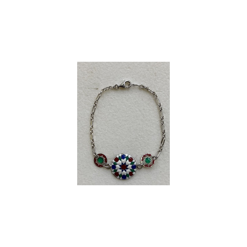 Pulsera de plata de 925 mls. Con baño de rodio. Decorado con Azulejo del taller de la ciudad palatina de Medina Al-Zahra de Córdoba del año 936.d.c.