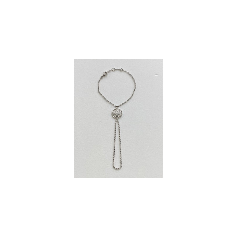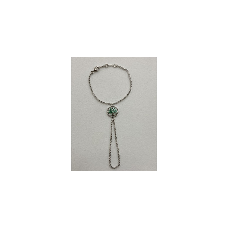 Pulsera enganchada al dedo, de plata de 925mls. Con baño de rodio y combinadas con cerámica vidriada para metales.en plata de 925mls. Decorada con el Árbol de la Vida de la ciudad palatina de Medina Al-Zahra de Córdoba del año 936. d. c.