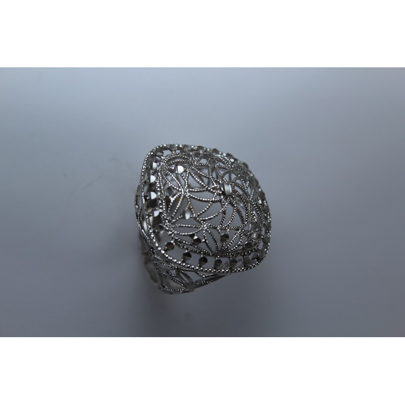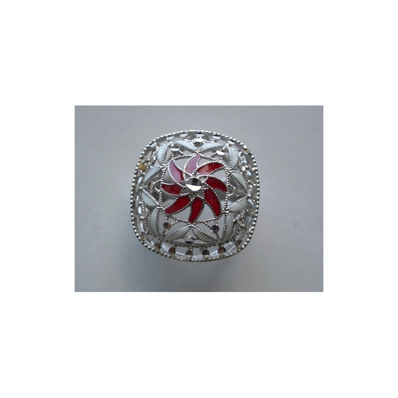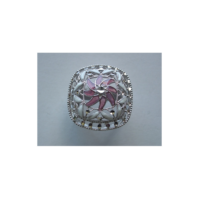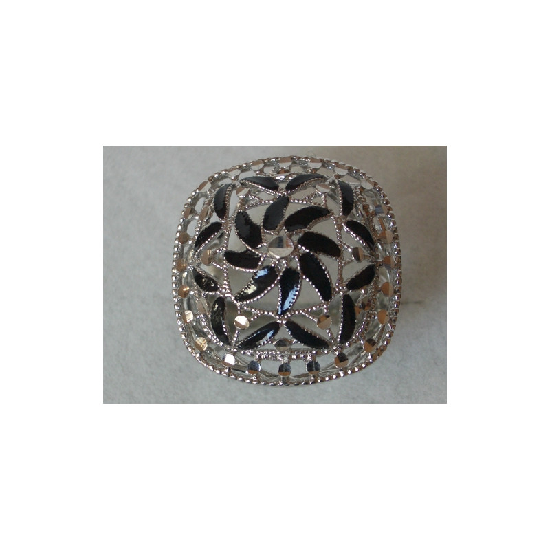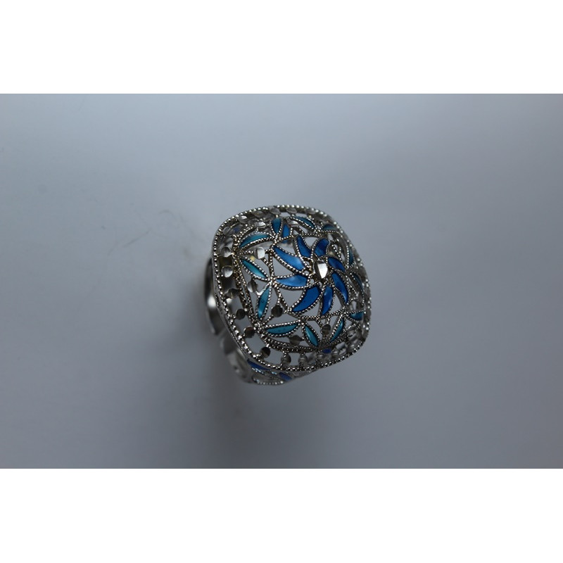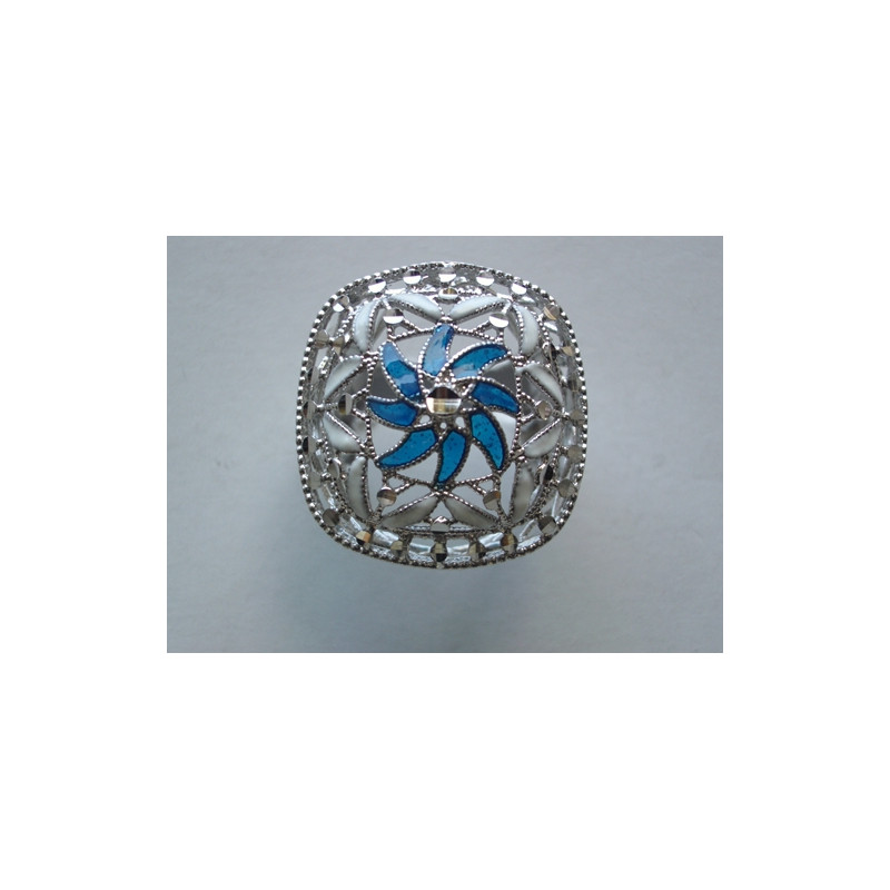 Anillo en plata de 925 mls. Con baño de rodio. Combinados con cerámica vidriada para metales. Decorado con el Trono de Dios de la Cúpula de la Maqsura de la Mezquita de Córdoba del año 960. d. C.